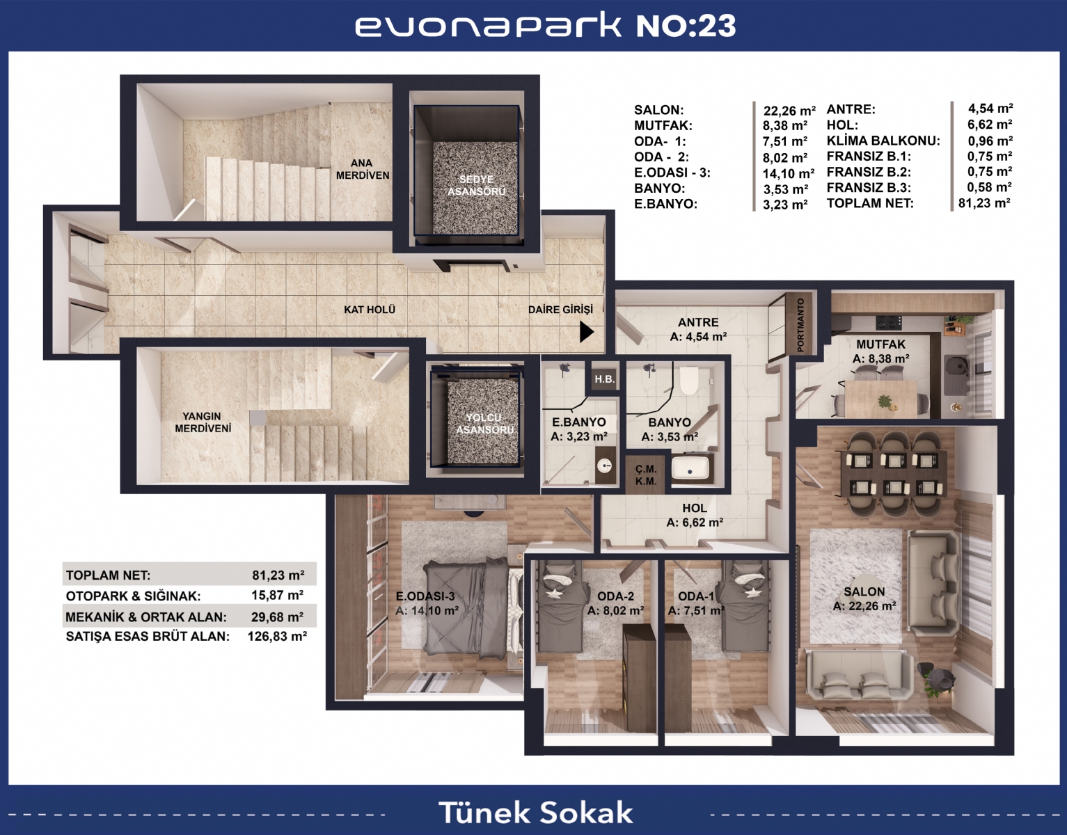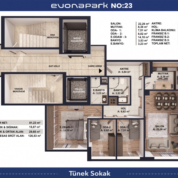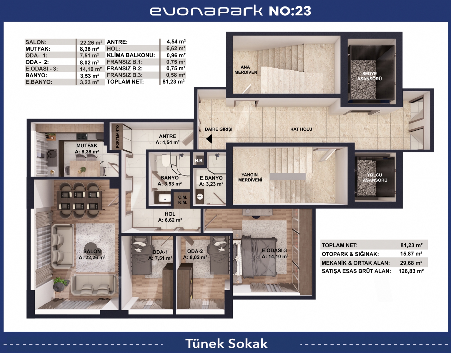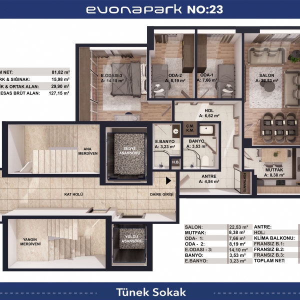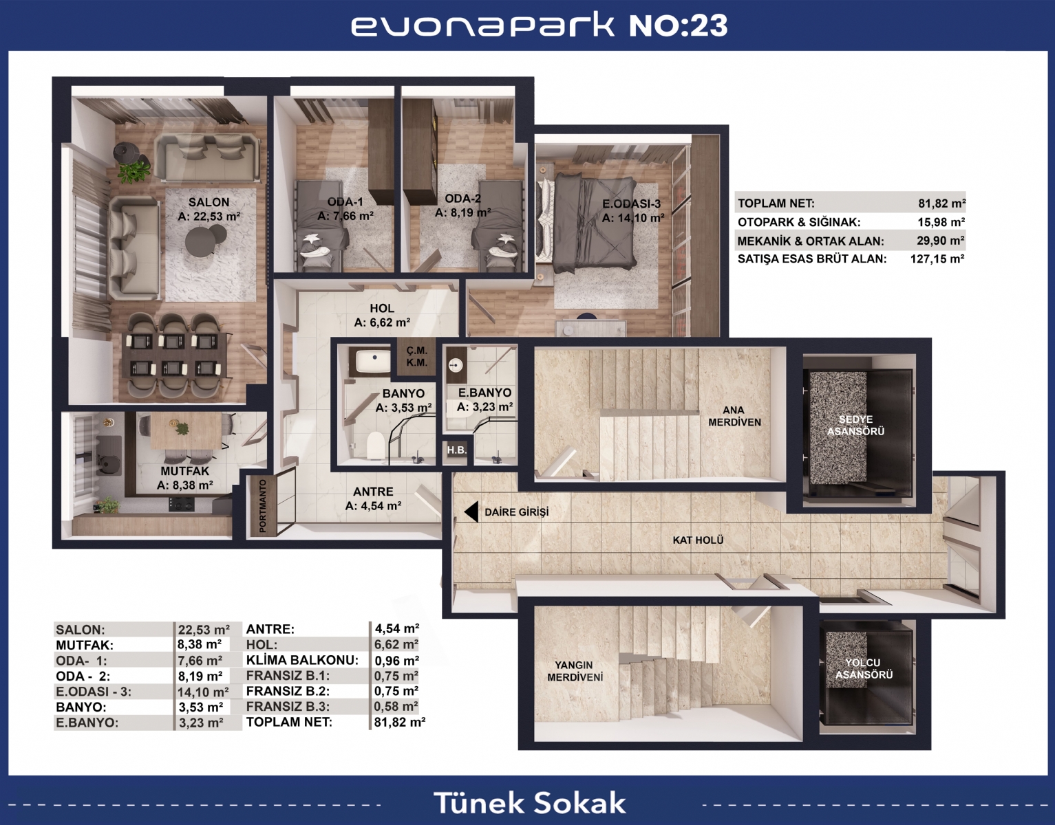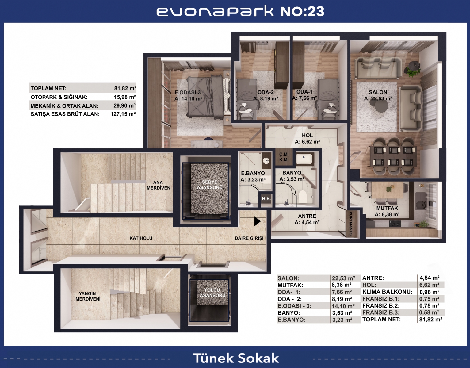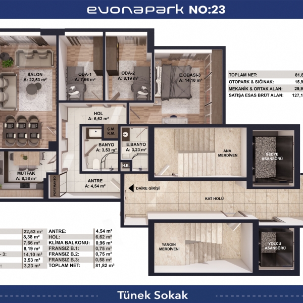 Çocuk oyun parkı, basketbol sahası ve keyifli kamelya alanıyla EvonaPark No:23, 12 katlı yapısı ve sadece 52 dairesiyle sınırlı sayıda kişiye ayrıcalıklı bir yaşam sunuyor.